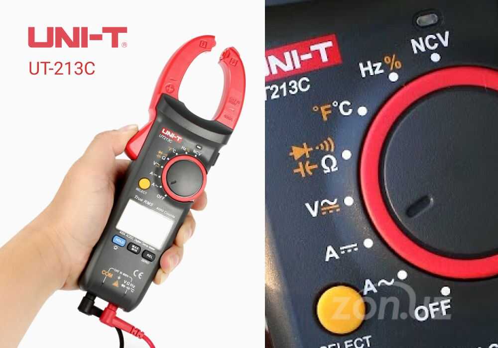Чтобы правильно пользоваться токоизмерительными клещами, необходимо знать их внешнее исполнение и функциональные элементы. В качестве примера мы взяли модель от бренда UNI-T UT213C.