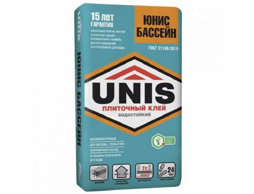 ЮНИС 2000 | Клей обладает усиленной прочностью сцепления, стойкостью к влаге и резким температурным перепадам, подходит для облицовки теплых полов. Используется для укладки плитки от 30х30 см до 60х60 см. Может выравнивать перепады высоты на рабочей поверхности до 15 мм. Средний расход составляет 1,4 кг/м2, время жизнеспособности смеси – 180 минут |