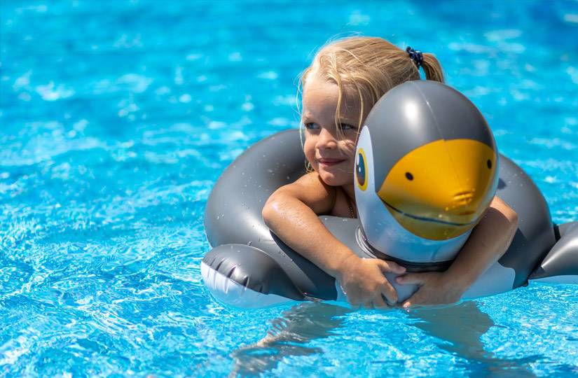 Безопасность превыше всего: бассейн должен иметь навес от солнца или естественную тень деревьев, возможность безопасного входа и выхода (лестница для глубоких резервуаров), система слива не должна быть слишком мощной, чтобы не затянуть малыша