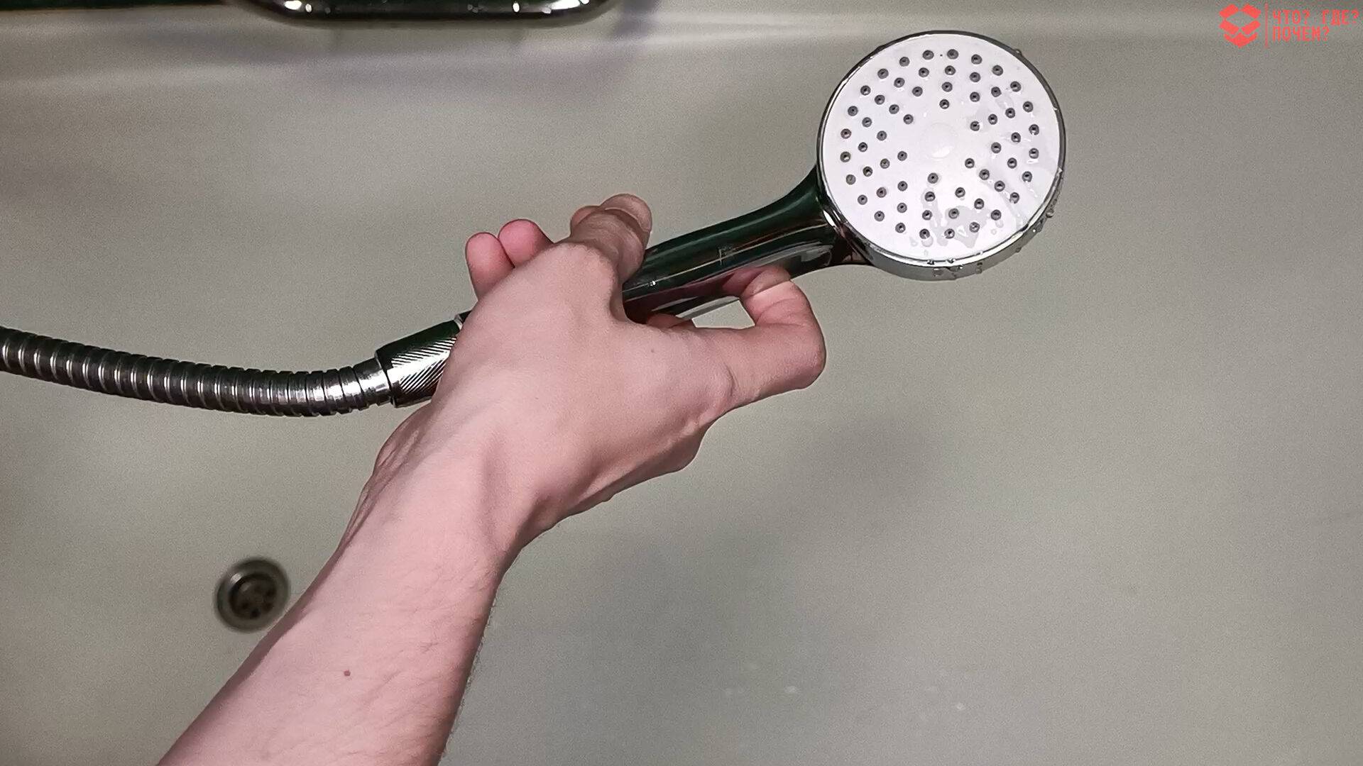 Количество воды выходит тут меньше. Это сразу понятно так как шланг находиться немного в напряжении, не сильно но чествуется давление внутри. Так что под мой напор и данный шланг он не подойдет, так как постоянно держать шланг в напряжении приведет к его поломке. По ощущениям в деле он мне понравился, но как по мне количества воды которое текло было недостаточным. Как никак я уже привык большому расходу воды. Но для тех у кого напор слабый душ очень хороший.