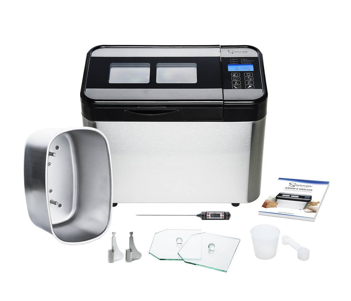 Модель стандарт включает в свой набор: форму для выпечки, лопатку, стеклянную крышку, цифровой мультитермометр и мерную кружку. Внешний вид – стильный, изящный, корпус металлический, панель управления подсвечивается. Достойная покупка, поскольку в устройстве можно готовить как хлеб, так и джем, солод, мясо и рыбу.