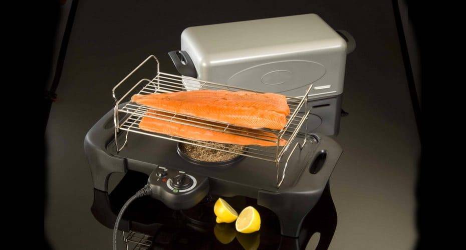 | Электрические | Внешним видом напоминают обычную духовку. Пользуются огромной популярностью среди жильцов многоквартирных домов. Наличие огня или костра не предусмотрено. Устройство имеет камеру, куда закладываются опилки или брикеты. Работает от электросети. Благодаря электрическим тэнам продукты нагреваются одновременно с опилками. Происходит запекание мясных и рыбных продуктов, овощей и фруктов. Среднее время приготовления – полчаса. Температура выставляется заранее и не меняется. Габариты несущественные. Данным оборудованием оснащаются кафе и рестораны. Обязательное условие функционирования – наличие вытяжки. Дым должен покидать закрытое помещение. Потребляет небольшое количество стружки. Используется, в большинстве случаев, для горячего копчения. |
