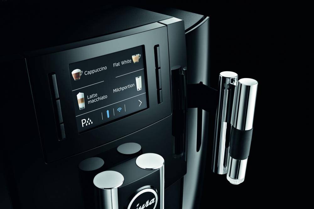 Кофемашина португальской фирмы Jura обладает всем требуемым набором функций: цифровое управление, капучинатор с молочным резервуаром, отстойник для отработанного кофе, контроллером температуры и давления.