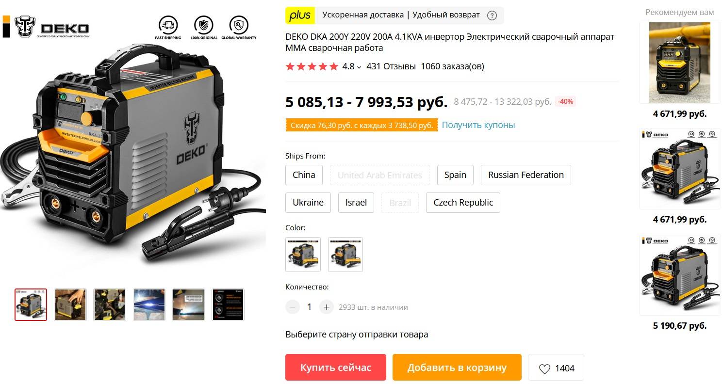 Не каждый экспортёр имеет возможность доставить товар в страну покупателя. Например, модель DEKO DKA-200Y 200A в Россию доставить другой страны нельзя.