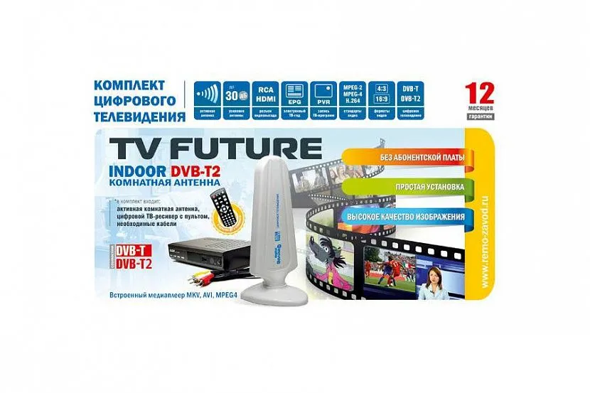 Если вы ищете лучшие комнатные антенны для цифрового ТВ с возможностью записи просмотренных программ, комплект оборудования TV Future Indoor DVB-T2 – будет самым оптимальным вариантом.