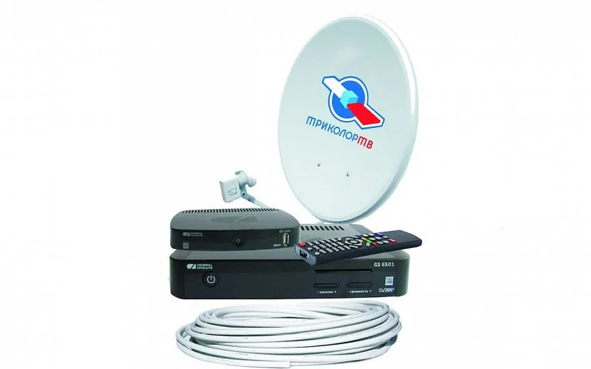 В качестве примера лучшего комплекта от этого оператора представлен набор с названием «Триколор Full HD 501/591». Входящее в набор оборудование открывает возможность просматривать любимые телеканалы одновременно на двух телевизора, ничем не привязанных друг к другу. В базовую комплектацию входит: