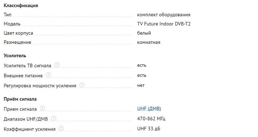 Технические характеристики TV Future Indoor DVB-T2Источник dns-shop.ru