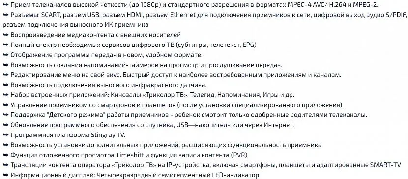 Технические характеристики Триколор Full HD 501/591 Источник gs.ru