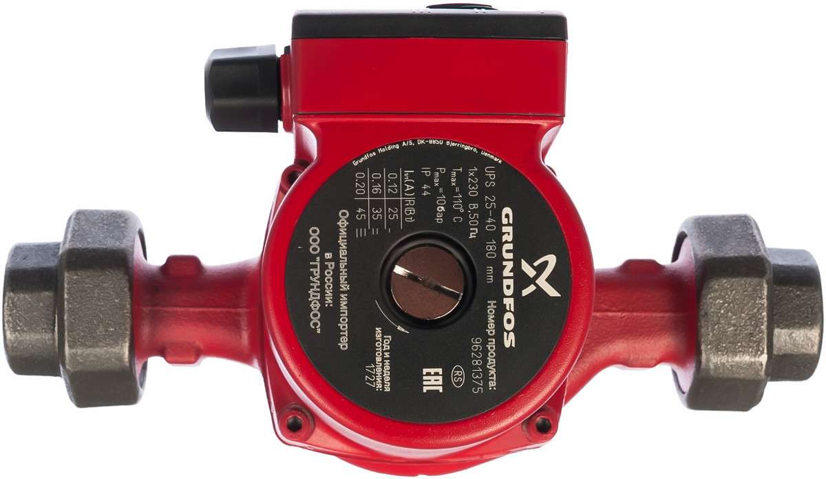 Датский бренд Grundfos является признанным лидером в сфере производства сантехоборудования. Компактный и легкий насос на теплый пол UPS 25-40 180 потребляет всего 45 Вт, выдавая при этом максимальный напор 4 м и пропускную способность 2,93 куб. м/ч. Модель оснащена асинхронным электромотором и переключателем. Установка может работать как в горизонтальном, так и вертикальном положении. Монтировать циркуляционный насос для теплого пола grundfos допускается и в закрытые, и в открытые системы отопления.