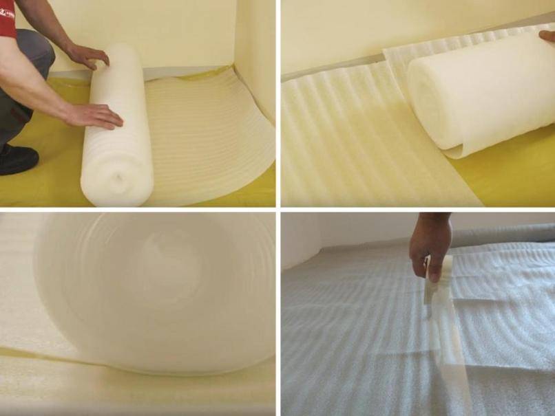 Пенополиэтиленовая подложка — самая дешевая и выпускается в рулонах, как и два предыдущих варианта. Материал хорошо переносит повышенную влажность, стоек к воздействию грибка и химических веществ, а также обеспечивает дополнительную теплоизоляцию. При этом подложка данного вида имеет рекомендуемый срок службы 2-3 года, обладает не лучшей шумоизоляцией и не обеспечивает гидроизоляцию.