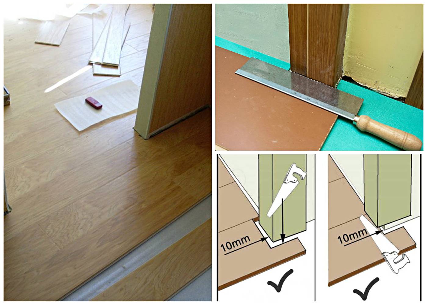 1. В первом случае сначала монтируется ламинат, а затем устанавливается дверная коробка