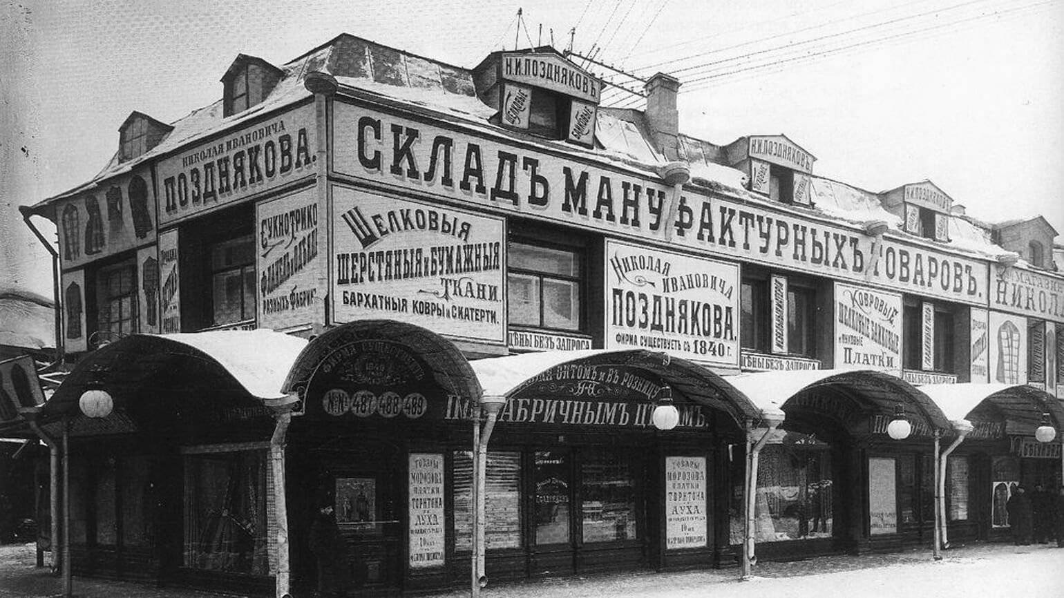 Склад и магазин мануфактурных товаров Н. И. Позднякова в Апраксином дворе в Санкт-Петербурге. 1910-е годы. Фото: энциклопедия Санкт-Петербурга