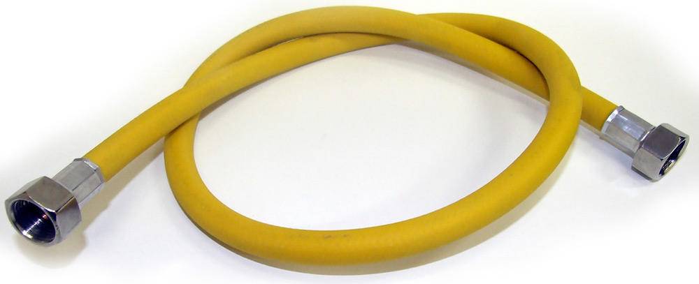 Поливинилхлорид – это, наверное, самый распространенный полимер на сегодня. Его используют везде, благодаря уникальным свойствам и невысокой стоимости. С недавнего времени из него начали делать и газовые шланги. Они почти такие же долгоиграющие, как и сильфонные, про которые мы расскажем чуть ниже, инертны к жирам, кислотам и щелочи, не проводят электрический ток. Все эти свойства вместе характеризуют решение, как одно из самых лучших. Шланг из ПВХ двухслойный – внутри черный материал, а снаружи – желтый. Между ними находится армирующий слой. Материал этот только зашел на рынки, поэтому не все газовые службы с ним знакомы и принимают при вводе в эксплуатацию – если решили покупать, то сначала получите консультацию по этому поводу. Средняя стоимость такого решения – 140 руб. за полметра.