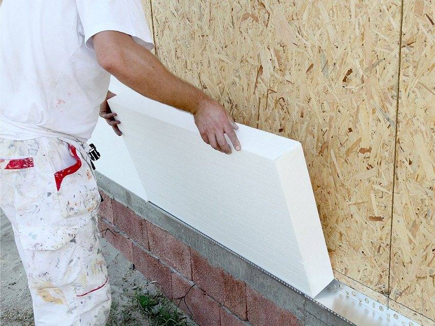 пенопласта. При монтаже он должен выступать за стену на толщину утеплителя плюс