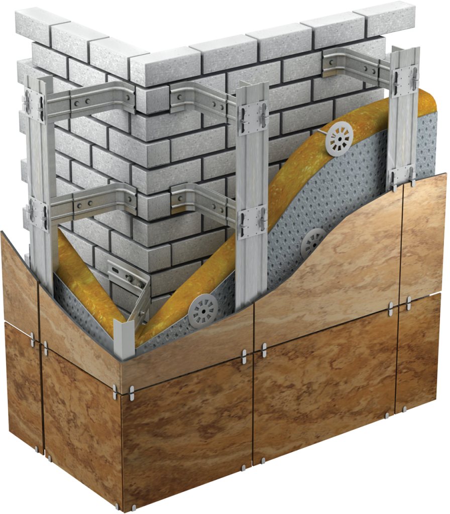 Из всех технологий утепления фасадов дома данный метод пользуется наименьшей популярностью, однако это достаточно легко объясняется. Основу вентилируемого фасада составляет установка жесткого каркаса из металла прямо по всей площади дома.