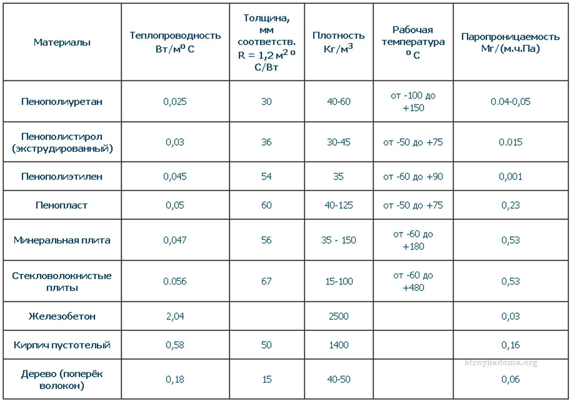 Коэффициент теплопроводности пеноплекса в сравнении с другими материалами