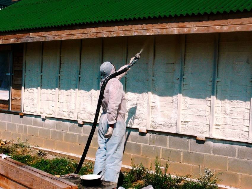 Нанесение пенополиуретана на наружные стены дома производится следующим образом: