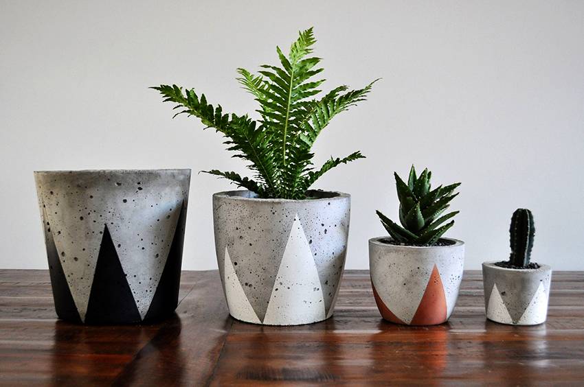 По этим же технологиям можно делать вазоны разных размеров и форм. Например, как на этом фото — вазоны из цемента для суккулентов.
