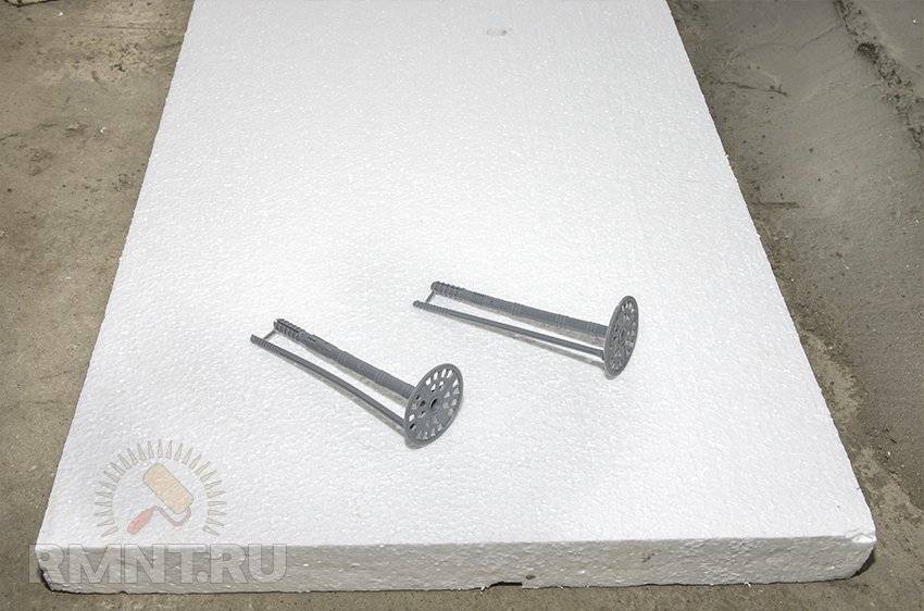 Через слои утеплителя и ветрогидрозащитной мембраны в стене высверливаются отверстия, в которые устанавливаются дюбеля тарельчатого типа. С помощью этих дюбелей производится фиксация утеплителя и мембраны.