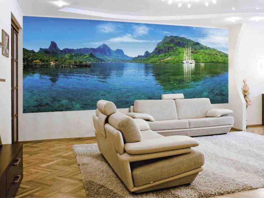 Когда-то такая модная тема снова возвращается: снова стали популярными фотообои. Только уровень печати уже другой. Современные технологии позволяют переносить на бумагу любое фото, а широкоформатная печать — отпечатать все на одном листе. Так что никаких стыков и фотографическая четкость создают 3D эффект.