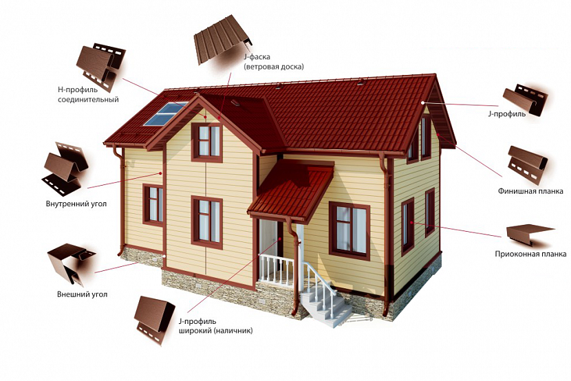 Комплектующие для металлосайдинга изготавливаются простые и сложные. Менять этапы проведения работ можно: изначально устанавливаются сложные планки, а простые можно крепить позже, так как они устанавливаются поверх панелей. Также огромное преимущество металлосайдинга — возможность облицовки нетрадиционных сложных узлов на фасаде здания. Радует и стоимость комплектующих для металла — разница в цене с винилом доходит до 50%.