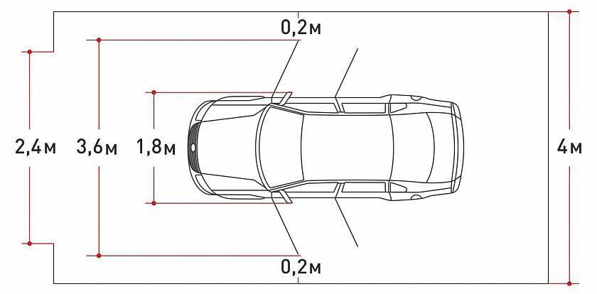 Для удобства посадки и высадки пассажиров ширина гаража должна быть на 20-30 см больше ширины автомобиля с открытыми дверьми.