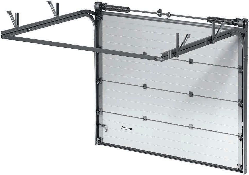 . При открывании секции движутся вверх по направляющим, плавно переходя на потолок. В открытом состоянии они удерживаются на потолке. А это — причина, по которой добавляют слово подъемные