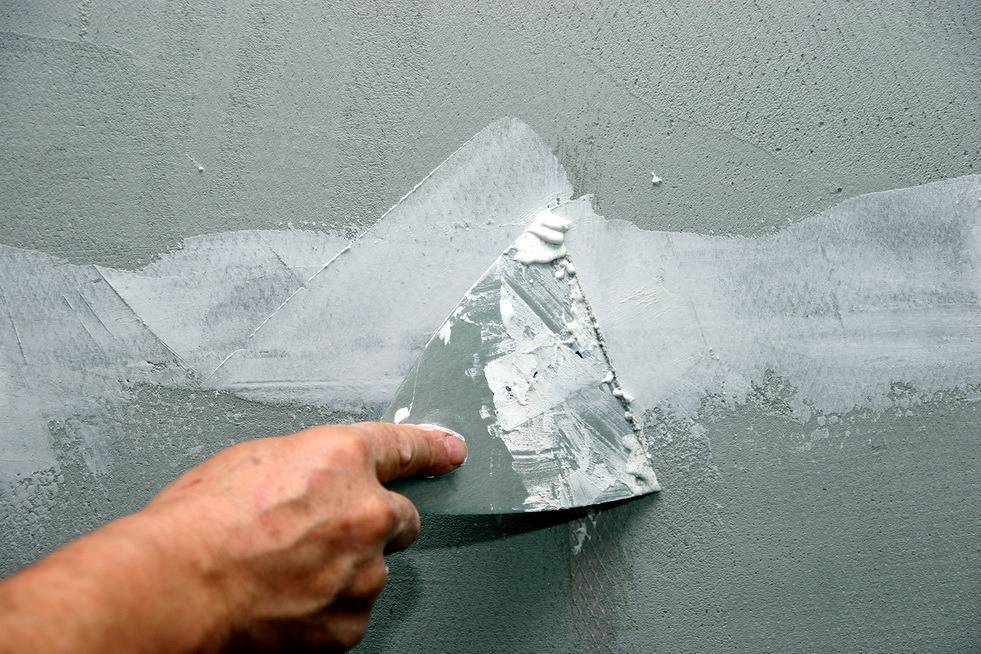 Заделка раствором происходит в два захода. Когда основной слой схватится, его очищают от дефектов шпателем. Поверхность грунтуется. После того как первый слой высохнет, наносится финишный. После высыхания он шлифуется.